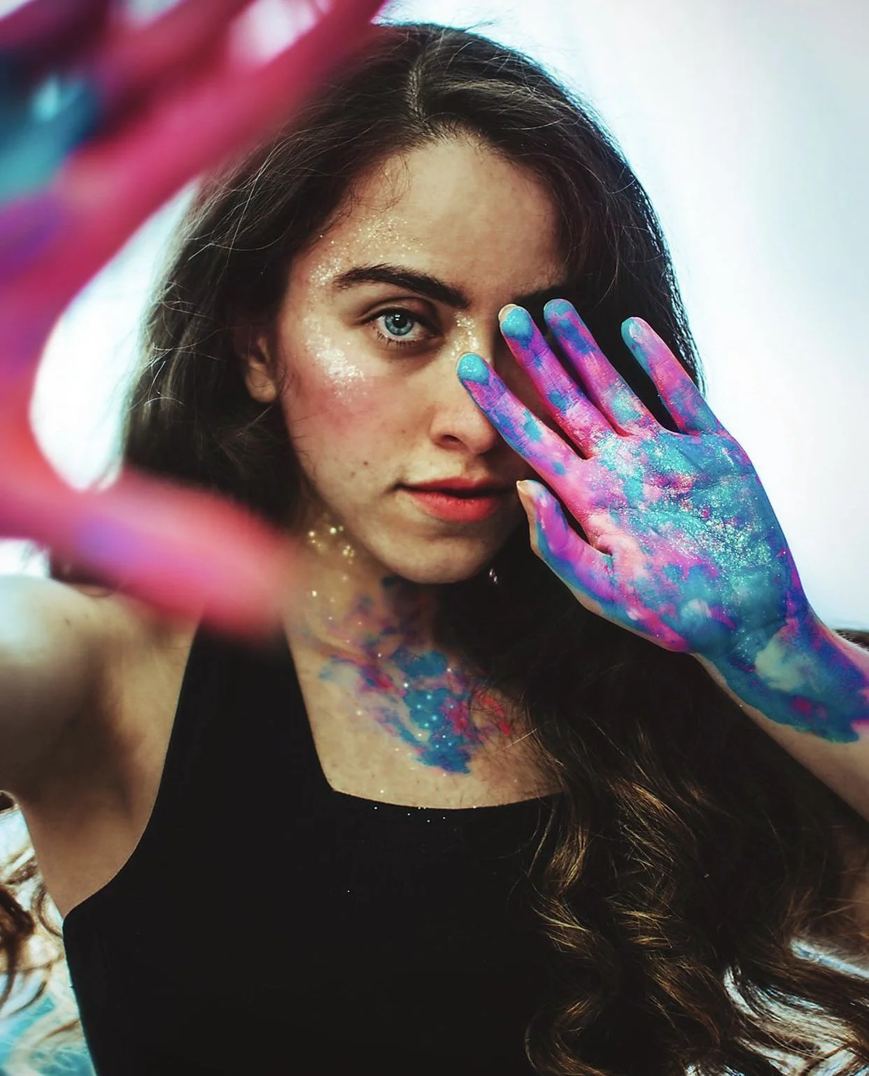 Glitter. Love. Everywhere. Get playful by using glitter in your makeup, outfit choice, nails, blow it for photo effect, cover your face or body with it. Be careful – you might find sparkles on the floor, but this creative portrait is worth it!
