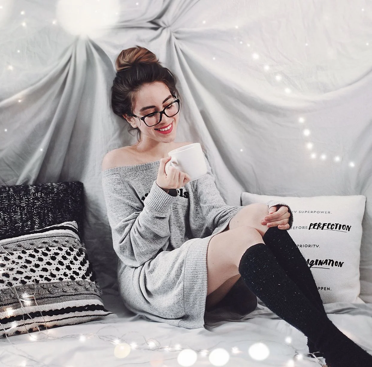 Fairy Lights build a space in photography that drives magical, inspiring and ethereal impact. For more contrasted and vivid images, try placing fairy lights in a way that involves your background, you as the main subject and props for more dynamic results.